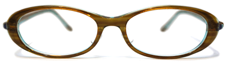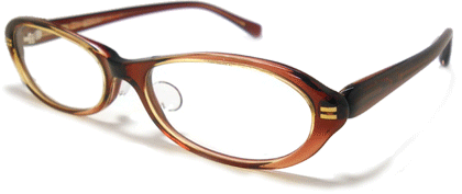 そしてフロントのブラウンカラーですが、よく見るとこのように少しキラメキのある美しいカラー。やさしく使いやすいレンズシェイプで掛け手を選びません。