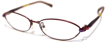 フロントのデザインだけでは気づきませんが、少し横向けると・・・。 テンプルとのつながりで音符マークが現れる何とも奥ゆかしいメガネフレームです。